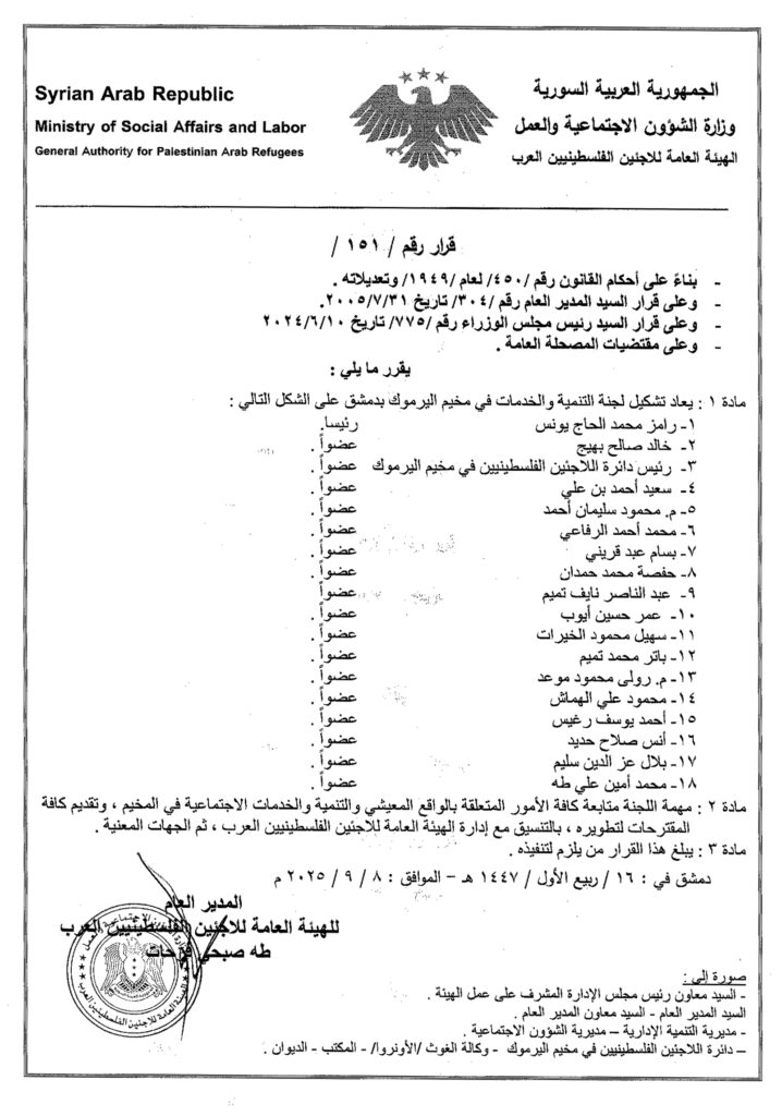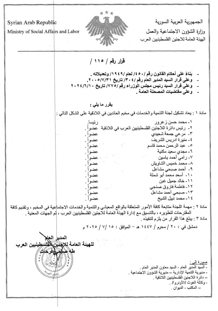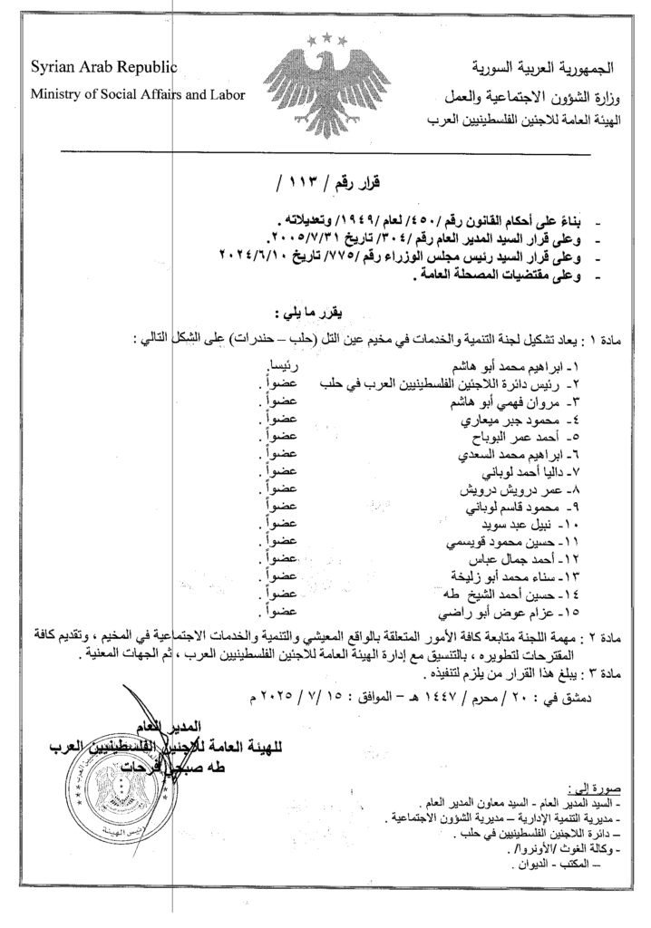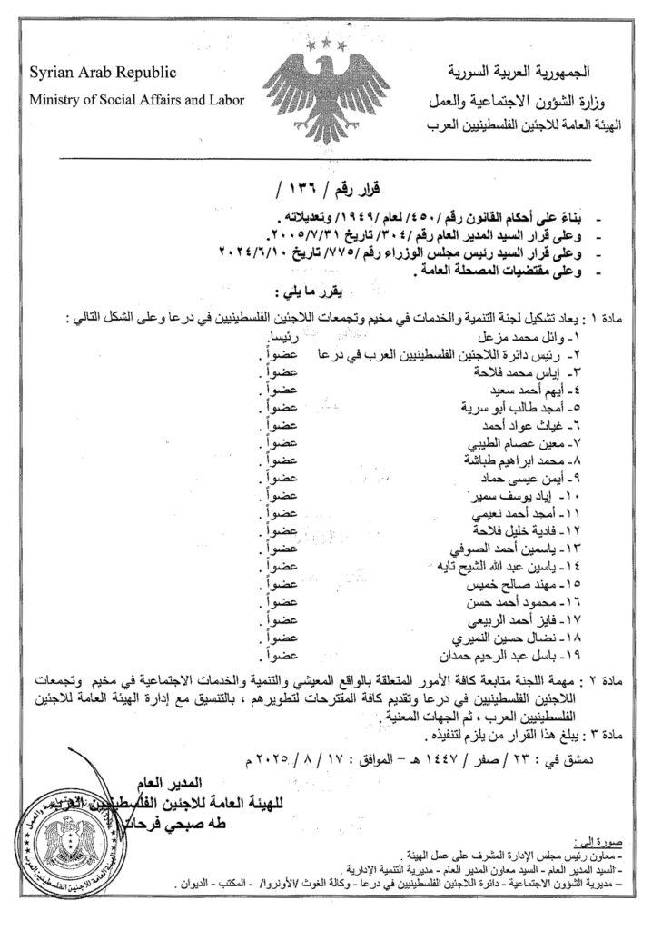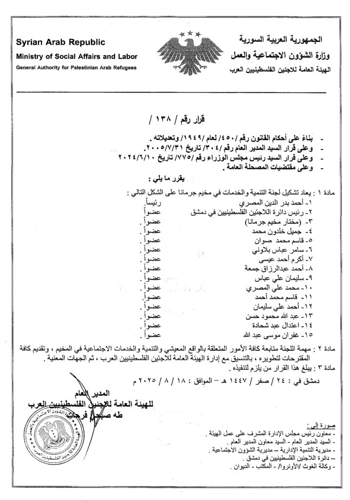 الأخبارالمخاتيرتعاميم متعلقة بالفلسطينيين في سورياغير مصنفقرارت وتعاميملجان التنمية